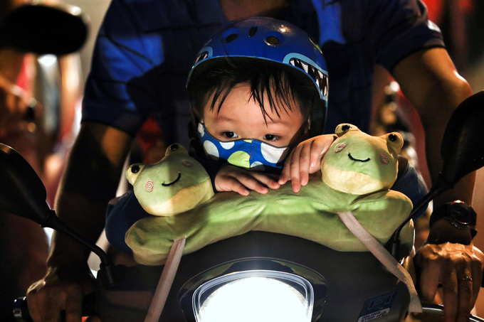 Nhiều em nhỏ tỏ ra mệt mỏi vì tiếng còi, mùi khói khét lẹt.