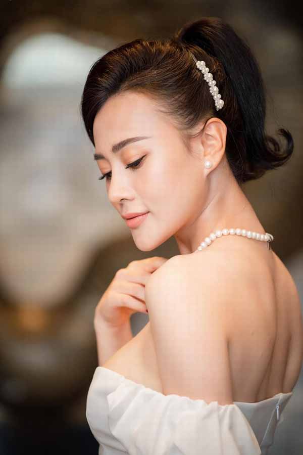 Hoa hậu Hương Giang khoe vai trần nõn nhà trong thiết kế của Lê Thanh Hòa. Hoa hậu đẹp nhất châu Á có hôn nhân viên mãn bên chồng và hai con nhỏ.