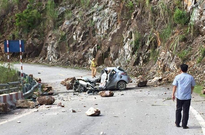 14h ngày 3/6, ôtô 4 chỗ đang quay đầu gần cầu Hang Tôm (xã Lê Lợi, huyện Nậm Nhùn, tỉnh Lai Châu) bị tảng đá dài hơn 1 mét từ phía trên lăn xuống đè bẹp, tài xế tử vong tại chỗ.