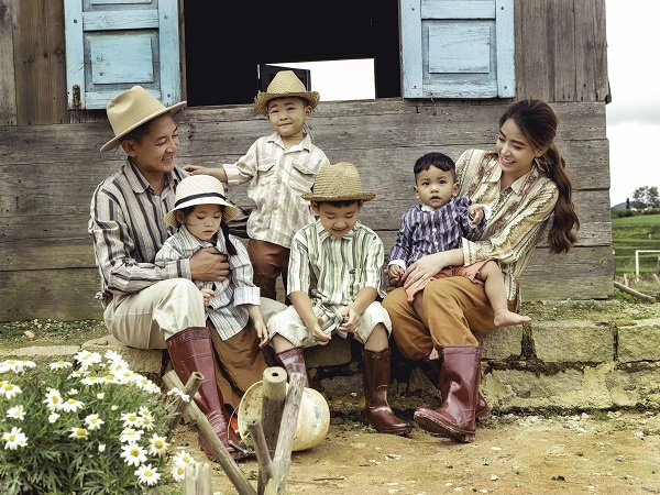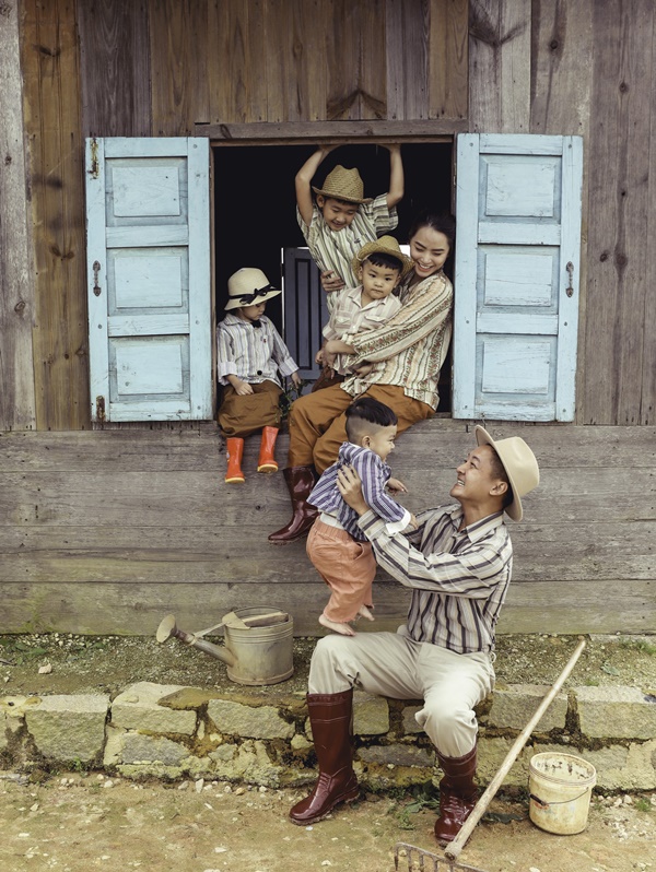 Vợ chồng Thành Đạt - Hải Băng vừa chia sẻ bộ ảnh nông dân với những khoảnh khắc đáng yêu và ngộ nghĩnh bên các thiên thần nhỏ.
