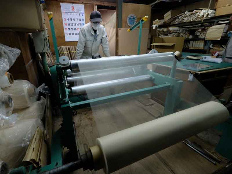 Những miếng giấy mỏng sau khi thành hình sẽ được đóng lại thành từng cuộn. Thành phẩm ở bước này đã trở nên gần như trong suốt. Tenjugo có độ dày chỉ 0.02mm, cũng chính là độ dày của sợi kozo. Độ dày này còn mỏng hơn cả độ dày của da người, và đây chính là thành tựu mà không một xưởng sản xuất nào khác có thể đạt được.