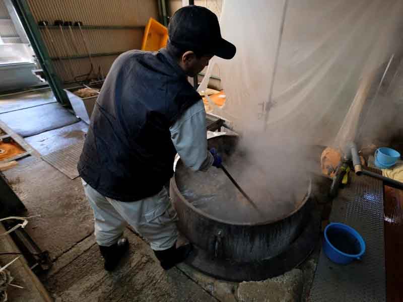 Sau đó, kozo được mang đi “luộc”. Quá trình này giúp tách những chất không cần thiết ra khỏi kozo, phần còn lại mới được sử dụng để làm giấy.