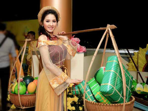 Tại chương trình, người đẹp Thái Nhã Vân còn thể hiện khả năng ca hát với tiết mục “Trống cơm” đặc sắc.