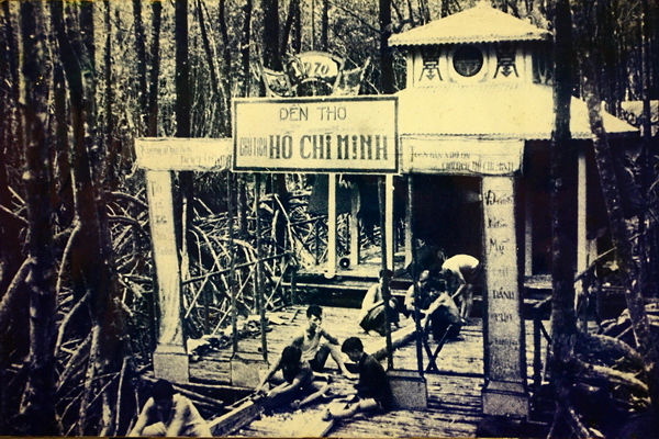 Đền thờ Bác Hồ ở huyện Ngọc Hiển, Cà Mau đang xây dựng sau khi Bác mất (1969)