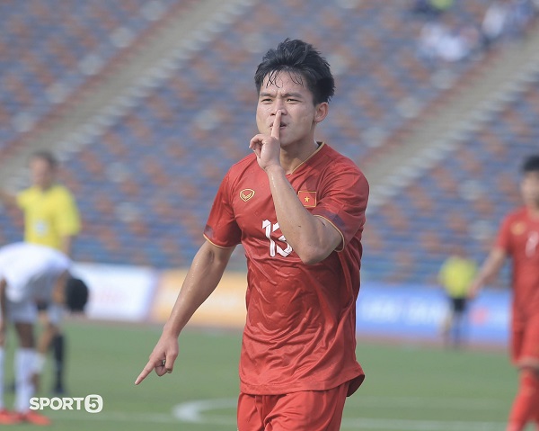 Hồ Văn Cường (13) lập cú đúp vào lưới U22 Myanmar. (Ảnh: Sport5)