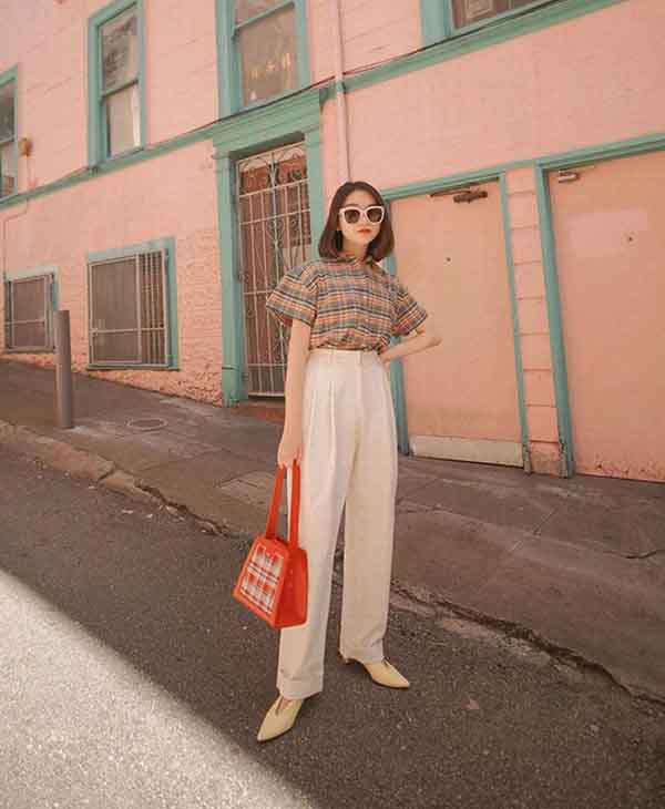 Áo blouse và quần ống rộng cạp cao là set đồ đúng chuẩn thanh lịch, phù hợp cho những cô nàng mê style công sở cho những chuyến đi chơi của mình.
