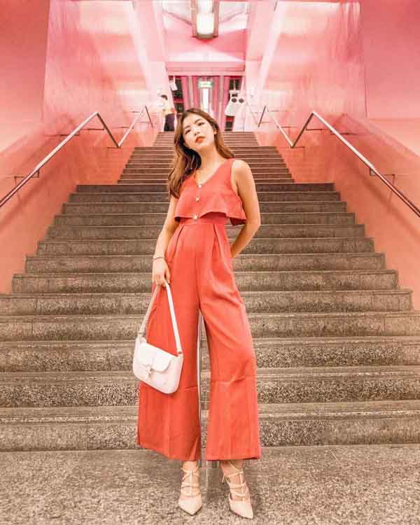 Một gợi ý không thể bỏ qua cho những cô nàng cá tính là Jumpsuit dài hoặc ngắn chiết eo. Trang phục giúp bạn trông thật nổi bật trong mọi địa điểm ăn chơi. Những gam màu nổi như màu cam hồng, vàng neon hay xanh navy là sự lựa chọn nịnh da và tôn dáng hàng đầu.