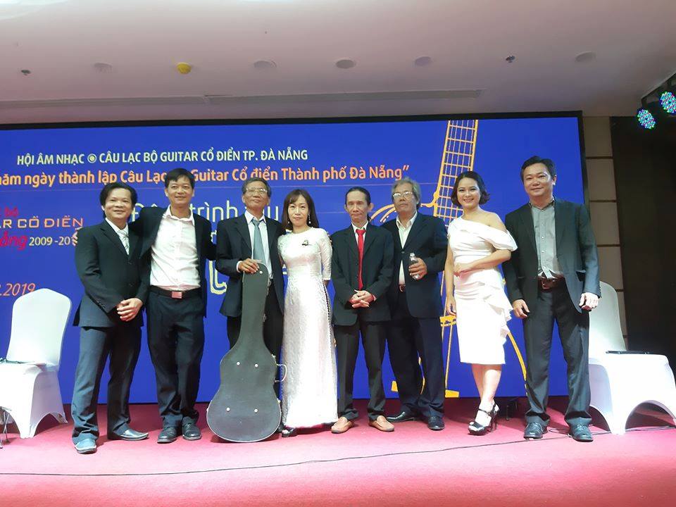 Nhạc sĩ, guitarist Nguyễn Văn Nho (thứ ba, từ trái qua) và các thành viên trong CLB Guitar Cổ điển Đà Nẵng.