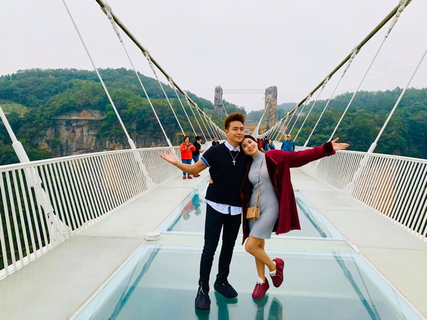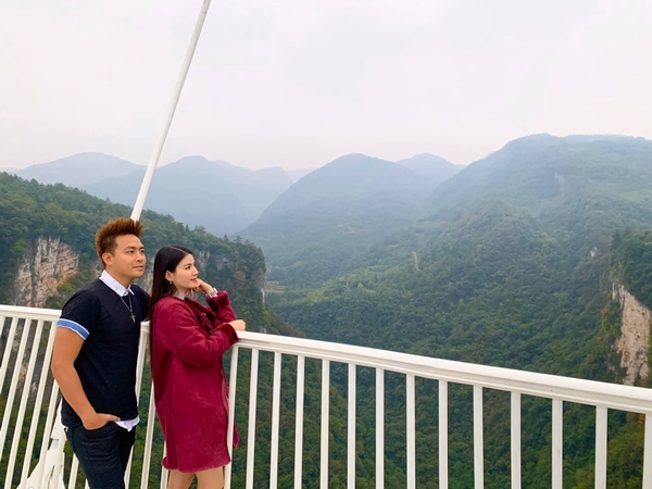 Không chỉ có thể, cả hai còn tự thử thách bản thân khi chinh phục chiếc cầu kinh cao và dài nhất Thế giới – cầu kính Thiên Vân Độ.