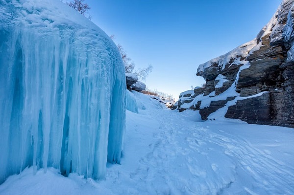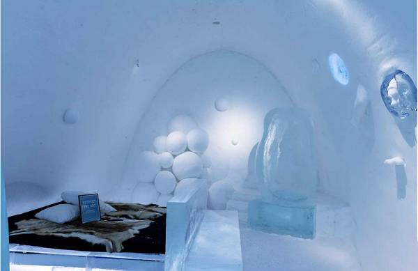 Khách sạn Ice ở Jukkasjärvi là khách sạn nổi tiếng thế giới được xây dựng hoàn toàn bằng băng và tuyết. Du khách có thể tham quan khách sạn này quanh năm. Khách sạn được chế tạo bởi đội ngũ thợ điêu khắc băng chuyên nghiệp và các phòng khác nhau không có phòng nào giống phòng nào. Nhiệt độ bên trong phòng dao động trong khoảng -5C. Bạn sẽ được cung cấp túi ngủ giữ nhiệt, ga trải giường ấm áp và đồ uống nóng trước khi đi ngủ để đảm bảo một giấc ngủ đêm thoải mái.
