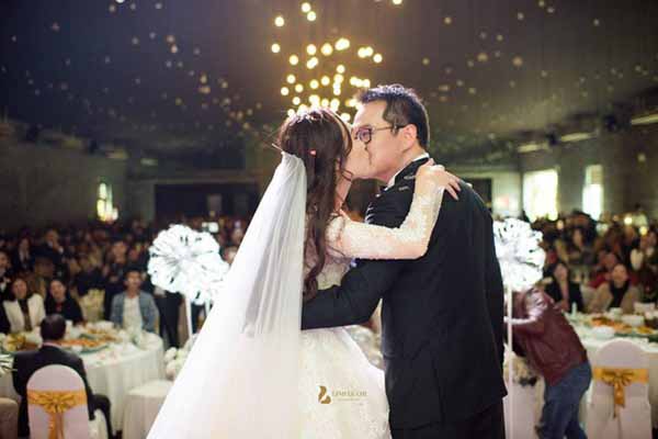 Khoảnh khắc lãng mạn trong hôn lễ của NSND Trung Hiếu và vợ.