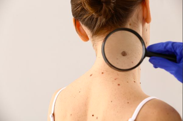 Các đặc điểm của một nốt ruồi hóa ung thư là thay đổi kích thước, màu sắc, hình dạng. Nó có thể sưng tấy và xung quanh chân nốt ruồi xuất hiện nhiều mạch máu. Ngoài ra, tình trạng ngứa, bong tróc ở nốt ruồi cũng có thể là dấu hiệu của ung thư da