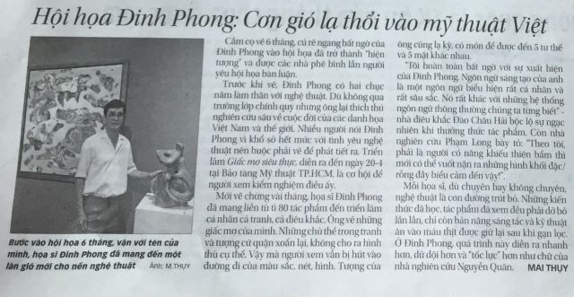 Bài viết về triển lãm “Giấc mơ siêu thực” trên báo Tuổi Trẻ số ra ngày thứ Sáu, 16.4.2021 đánh giá với nhiều phân tích và ghi nhận “Hội họa Đinh Phong, cơn gió lạ thổi vào mỹ thuật Việt”.