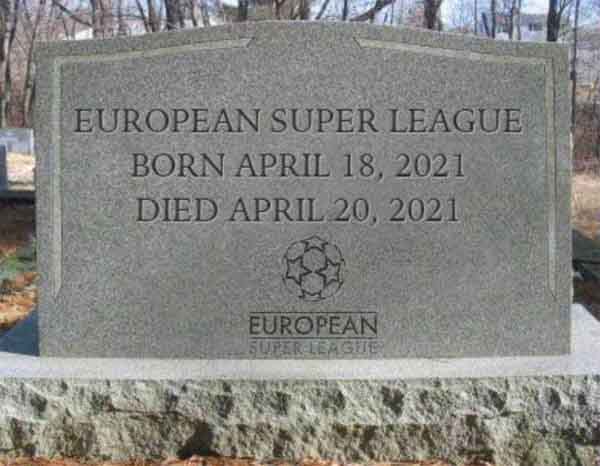 European Super League đã sụp đổ khi 8 trong số 12 thành viên sáng lập đến từ Anh, Ý và Tây Ban Nha từ bỏ dự án ly khai trước áp lực lớn từ người hâm mộ, chính trị gia, quan chức bóng đá và thậm chí cả Hoàng gia Anh.