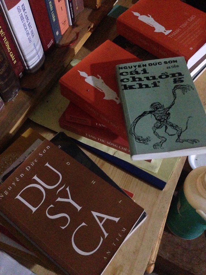 Một số tác phẩm của thi sĩ Nguyễn Đức Sơn tại Phương Bối Am – B’lao (Ảnh: Hoàng Thu An)