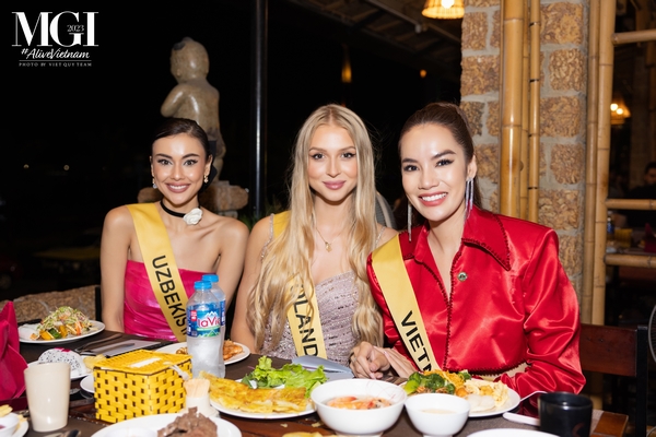 Thí sinh người Đức cũng yêu thích món súp của Việt Nam. ”Vị cay của súp thực sự rất tuyệt vời. Món tôm cũng không chê vào đâu được”, Miss Grand Đức chia sẻ về ẩm thực Việt.