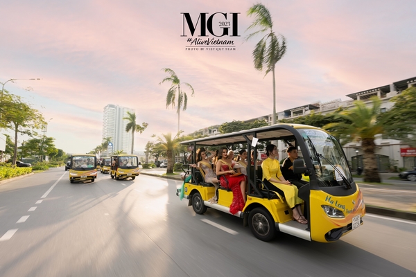 Di chuyển bằng xe điện, các người đẹp có cơ hội khám phá thành phố qua góc nhìn mới gần gũi hơn.