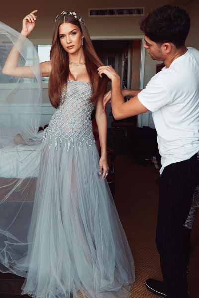 Josephine Skriver chọn mẫu váy xanh pastel nhẹ nhàng, xuyên thấu, đính kết lấp lánh, giúp cô khoe khéo vóc dáng. Đây là một thiết kế trong bộ sưu tập Thu – Đông 2019 của NTK Công Trí tại Tuần lễ thời trang New York vừa qua. Được biết, ngay sau khi show diễn của Công Trí tại New York Fashion Week khép lại, stylist của chân dài Josephine Skriver đã liên hệ với nhà thiết kế Việt để chọn trang phục cho cô tại sự kiện thuộc Oscar.