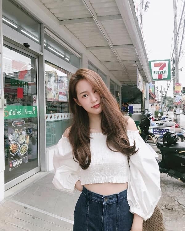 Nổi tiếng với vẻ đẹp trong sáng thánh thiện, Pimtha là một trong những fashion icon đình đám đến từ xứ sở chùa vàng. Phong cách của cô chủ yếu hướng tới sự trẻ trung, năng động không kém phần nữ tính. Tuần này, nàng fashionista của Thái Lan xuống phố với set đồ đơn giản mà hợp gu khi phối áo crop top tay bồng trễ vai màu trắng cùng với quần jean và phụ kiện đi kèm là túi lưới.