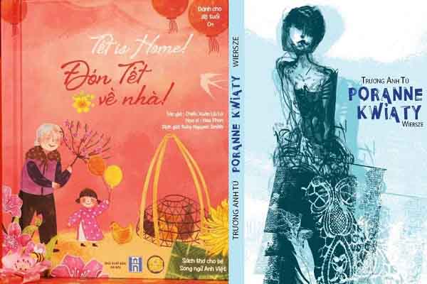 Bìa tập thơ song ngữ Việt – Anh Đón Tết về nhà!, và tập thơ song ngữ Việt – Ba Lan Hoa ban mai – Poranne Kwiaty