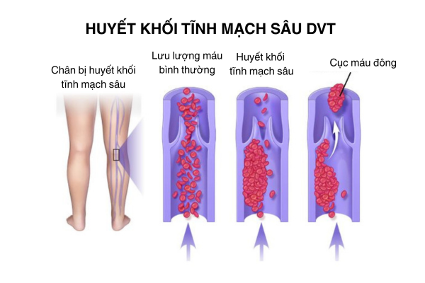 Huyết khối tĩnh mạch sâu (Deep Vein Thrombosis – viết tắt là DVT) là tình trạng cục máu đông hình thành bên trong tĩnh mạch, thường gặp ở chân. Tình trạng này có thể đe dọa tính mạng nếu cục máu đông di chuyển đến các cơ quan quan trọng khác của cơ thể.