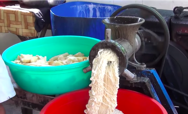 Khoai mì đang được xay ra để làm bánh tráng – Ảnh: Internet