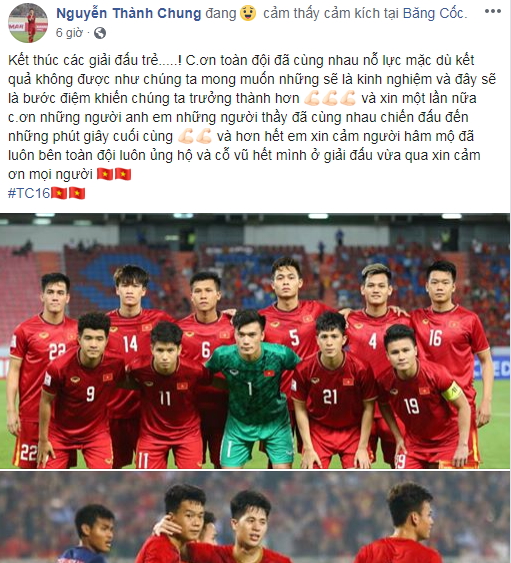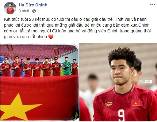 Còn tiền đạo Hà Đức Chinh cũng chia sẻ: “Thật vui và hạnh phúc khi được khi trải qua những giải đấu trẻ nhiều cung bậc cảm xúc.Chinh cám ơn tất cả mọi người đã luôn ủng hộ và động viên Chinh trong quãng thời gian vừa qua rất nhiều!”