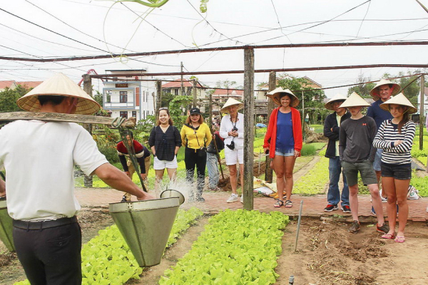 Khu làm du lịch cũng ngay trong làng rau. Khách nước ngoài đạp xe từ Hội An theo đoàn tới làng rau. Cảnh những chiếc xe đạp đi trong màu xanh cây cỏ vô cùng lãng mạng. Khu vườn rau của anh Bảy có một ô đất trồng rau biểu diễn. Khách nước ngoài cũng hí hoáy trồng rau, và họ cũng xách bình tưới múc nước trong hồ tưới rau mà gương mặt trông rất thích thú. Họ còn sẽ trải nghiệm tại mấy hàng ăn gần đó cách chế biến rau, ăn bánh xèo với rau.