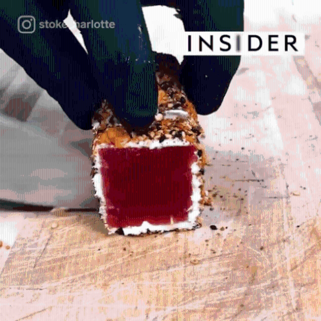 Trong suy nghĩ nhiều người, dưa hấu là món tráng miệng được cắt đơn giản. Nhưng món tráng miệng bằng dưa hấu được chế biến theo phong cách sushi khiến không ít thực khách nhầm lẫn. Các đầu bếp của Stoke Charlotte chế biến tài tình món sushi dưa hấu đến nỗi nhiều thực khách tưởng đó là miếng sushi với lát thịt cá ngừ sống đỏ.