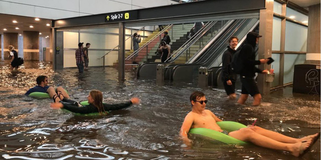 Thụy Điển: Người dân biến nơi ngập ở ga tàu thành bể bơi