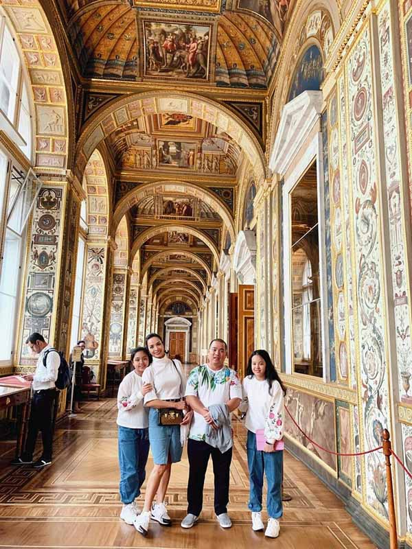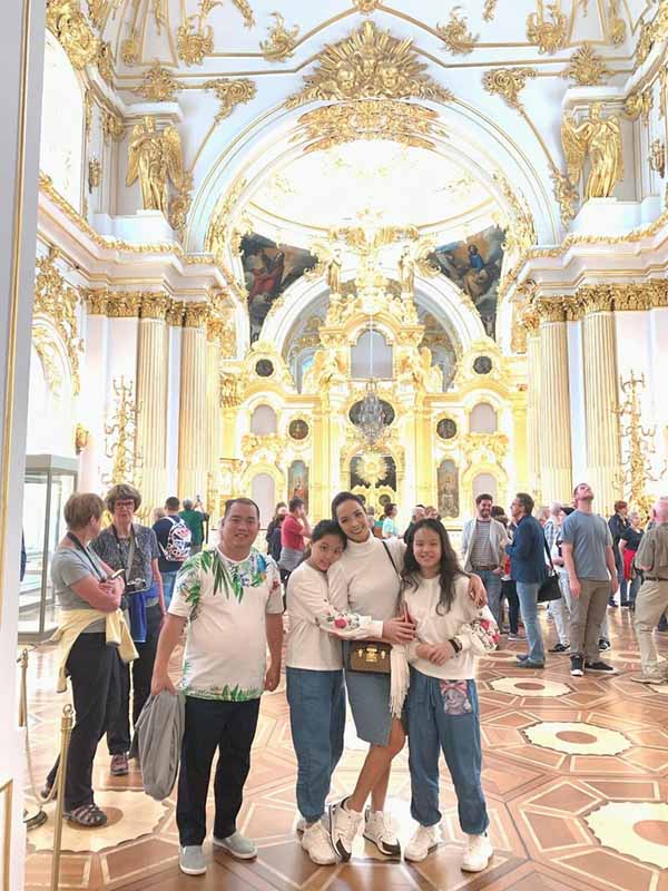 Thúy Hạnh cùng chồng đưa 2 con đi ngắm tranh và tìm hiểu về lịch sử thế giới ở Cung điện mùa Đông – SAINT PETERSBURG nước Nga. Đây là món quà dịp hè đôi vợ chồng tài năng dành cho hai con nhỏ sau năm học vất vả.