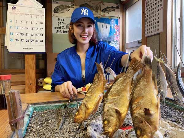 Thúy Ngân ‘Hân hoa hậu’ câu cá, thu hoạch lúa ở Nhật Bản