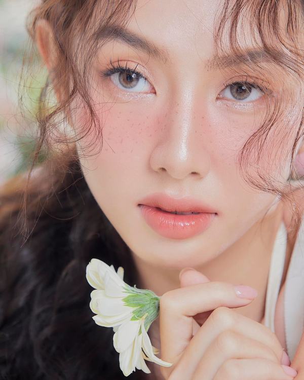 Với phong cách lần này, Thuỳ Tiên chọn trang điểm tông hồng ngọt ngào. Để khiến diện mạo trông “thơ” hơn, người đẹp vẽ tàn nhang giả kết hợp với má hồng sáng màu, tạo nên tổng thể vô cùng mới lạ, thu hút. Nhan sắc ngọt ngào cùng ánh nhìn thơ thẩn, Thuỳ Tiên đã “đốn tim” biết bao người hâm mộ.