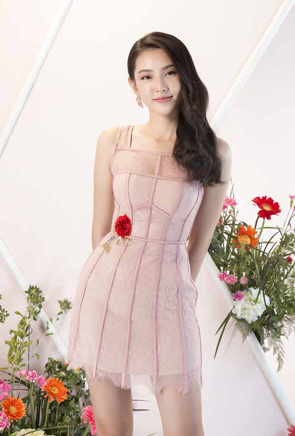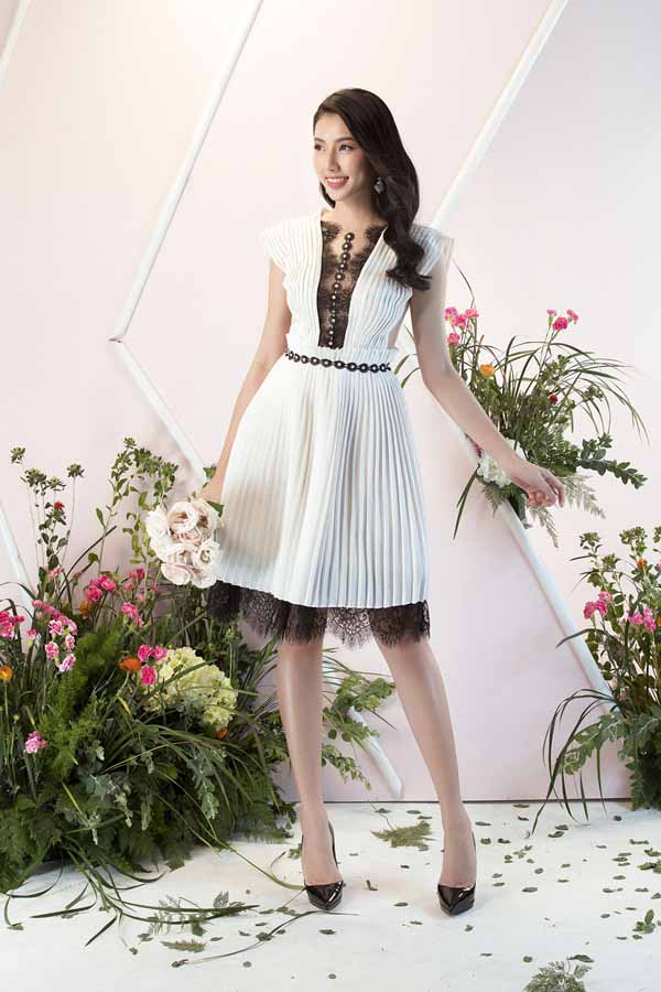 Với bộ sưu tập này, Thùy Tiên khoe hình thể nổi bật nhưng cũng rất thoải mái nhờ kiểu dáng đa dạng như váy ngắn, váy xòe…Nhà thiết kế lựa chọn chất liệu ren vốn đã trở thành thương hiệu để tạo ra những mẫu váy áo “nửa kín nửa hở”, tôn lên nét duyên ngầm cho người mặc.