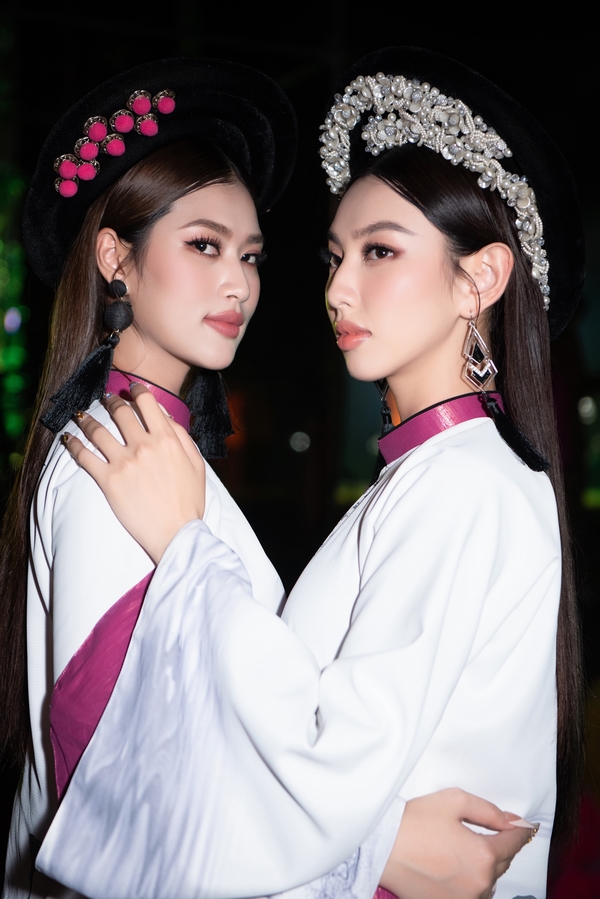 Dàn hậu cùng diện trang phục áo dài truyền thống của nhà thiết kế Việt Hùng thu hút mọi ánh nhìn của khán giả.