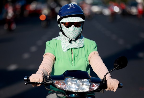 Người dân TP.HCM ra đường buổi giữa trưa cần chú ý mặc áo chống nắng, đeo kính mát để tránh tia UV