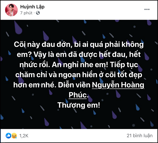 Bất ngờ khi thấy diễn viên Huỳnh Lập và Nam Thư chia sẻ trên trang cá nhân lời tiễn biệt nam diễn viên trẻ Hoàng Phúc.