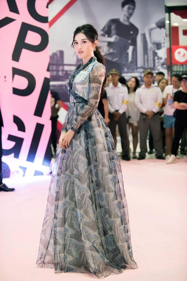 Khả Như đẹp xuất thần trong thiết kế xuyên thấu ánh kim, với phần cổ khoét sâu giúp người đẹp khéo léo khoe vòng một nóng bỏng.