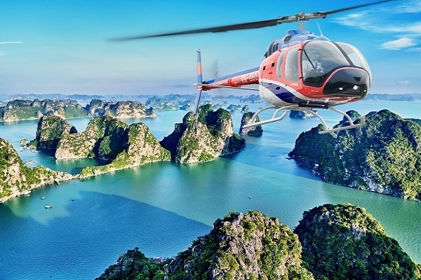 Vịnh Hạ Long được UNESCO công nhận là 1 trong 7 kỳ quan thiên nhiên thế giới. Đây chắc chắn sẽ là một trải nghiệm tuyệt vời không thể nào quên. Du khách sẽ di chuyển trên chiếc trực thăng hạng nhẹ Bell 505 do Mỹ sản xuất gồm 5 chỗ ngồi hiện đại, 1 chỗ ngồi cho phi công và 4 chỗ ngồi cho hành khách. Trong đó chỗ ngồi phía trước cạnh phi công là nơi có  thể dễ dàng ngắm nhìn toàn bộ cảnh đẹp nên sẽ có giá cao chơn các ghế sau.