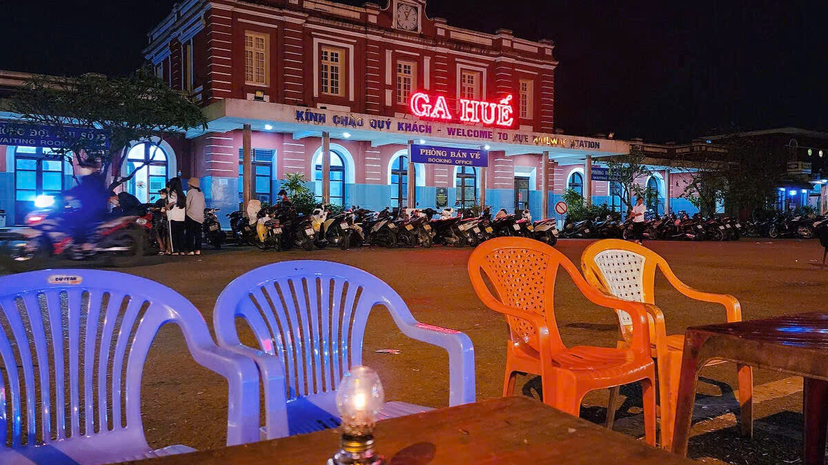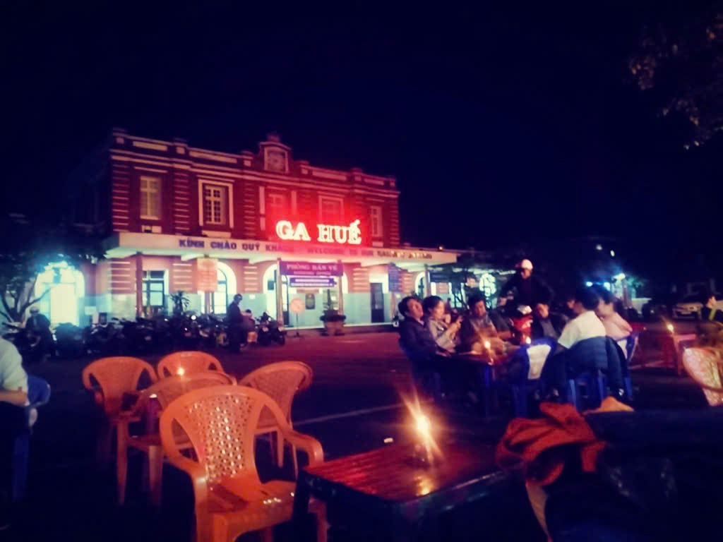 Dù khuya đến đâu, ga Huế cũng đông đúc, nhộn nhịp. Từng dòng người tấp nập qua lại. Các hàng quán chật kín khách. Không gian ồn ào, náo nhiệt: tiếng còi hú vang vọng báo hiệu tàu ra vào ga, tiếng xình xịch của những bánh xe ma sát vào nhau, tiếng reo hò, gọi nhau í ới của hành khách kèm theo tiếng đồ đạc va chạm lỉnh kỉnh – đã trở thành những âm thanh quen thuộc, một nét đặc trưng không thể thiếu ở nhà ga.