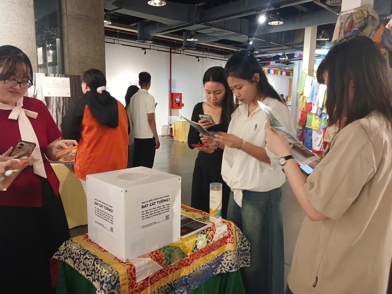 Không yêu cầu kiến thức nền về Phật học, triển lãm vẫn thu hút người tham quan nhờ chuỗi hoạt động trải nghiệm trực tiếp. Tại đây, khách tham quan có thể buộc dây gia trì, xoay kinh luân, in cờ cầu nguyện hoặc dành thời gian lắng mình trong phòng thiền tĩnh lặng. Những hoạt động này góp phần biến không gian triển lãm thành nơi tương tác, thay vì chỉ dừng lại ở việc quan sát.