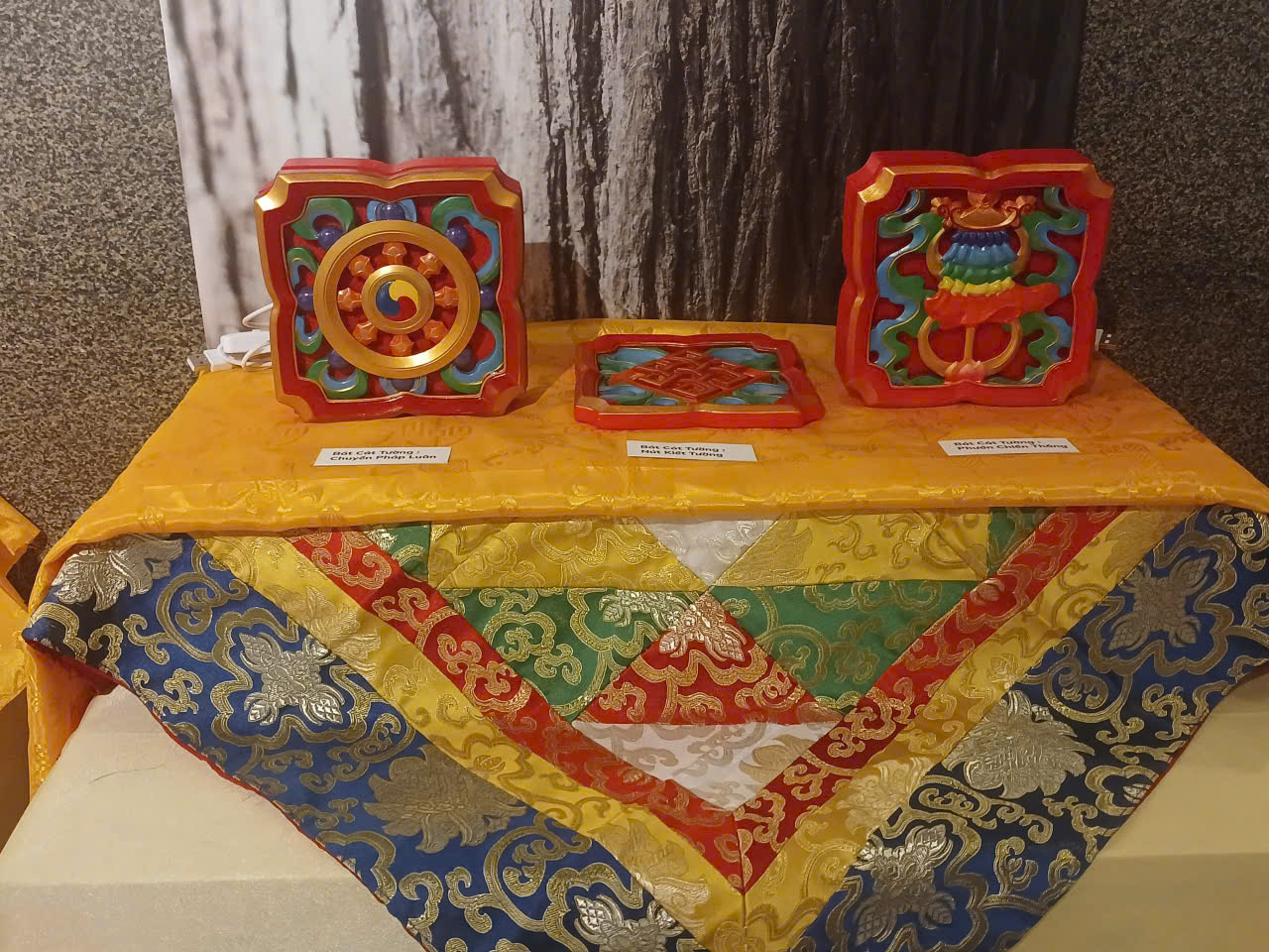 Các hiện vật và biểu tượng đặc trưng của Phật giáo Kim Cang Thừa được trưng bày, kết hợp cách sắp đặt không gian theo hướng dẫn dắt trải nghiệm, giúp người xem từng bước chuyển từ quan sát đến suy ngẫm nội tâm – Nguồn: Duyên Dáng Việt Nam