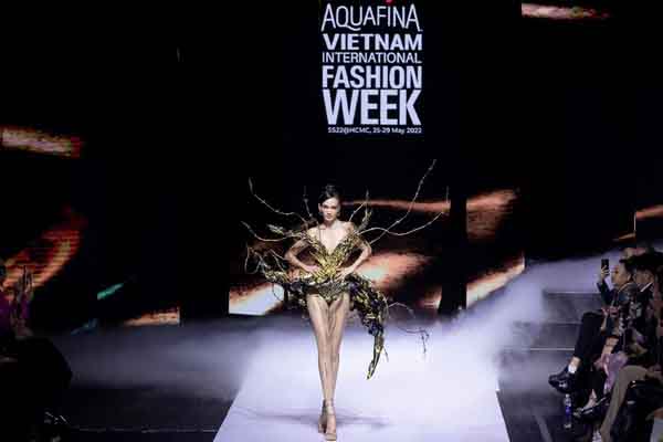 Nữ siêu mẫu Anh Thư được NTK Hoàng Minh Hà ‘chọn mặt gửi vàng’ cho vị trí Vedette trong khuôn khổ Tuần lễ Thời Trang Quốc tế Việt Nam 2022.