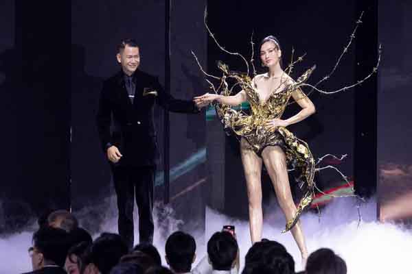 Siêu mẫu Anh Thư xuất hiện cá tính với vai trò là vedette cho NTK Hoàng Minh Hà.