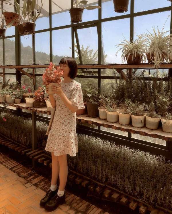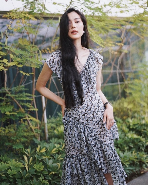 Helly Tống đẹp dịu dàng khi diện đầm hoa với điểm nhấn là các chi tiết nhún bèo điệu đà.