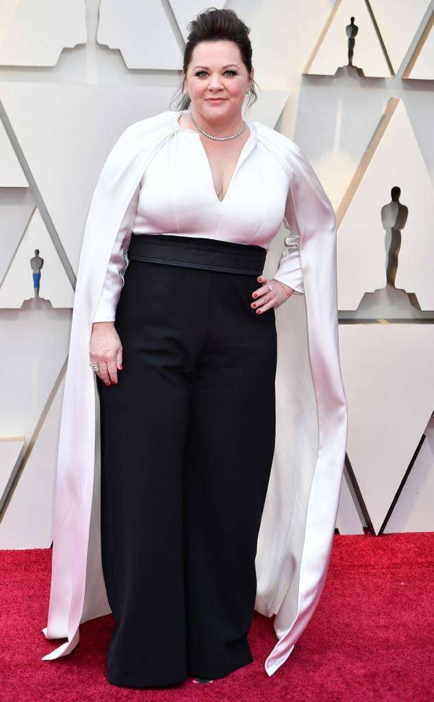 Với thân hình khá đầy đặn, nữ diễn viên Melissa McCarthy chọn trang phục có 2 tông màu đen, trắng cơ bản với thiết kế tối giản. Nữ diễn viên là một trong những cái tên được đề cử ở hạng mục Nữ diễn viên chính xuất sắc nhất.
