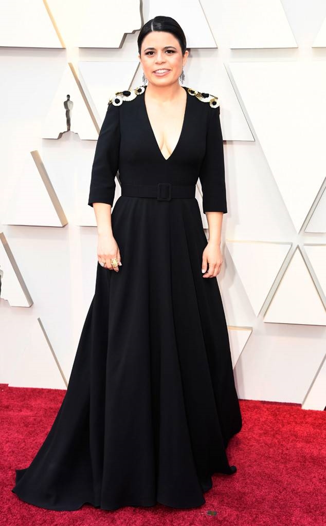 NSX phim Gabriela Rodriguez diện bộ váy màu đen thanh lịch, quyến rũ với điểm nhấn là những chi tiết màu vàng ánh kim ở cầu vai. Phim Romacủa Gabriela Rodriguez được dự đoán có nhiều khả năng giành giải tại Oscar 2019.