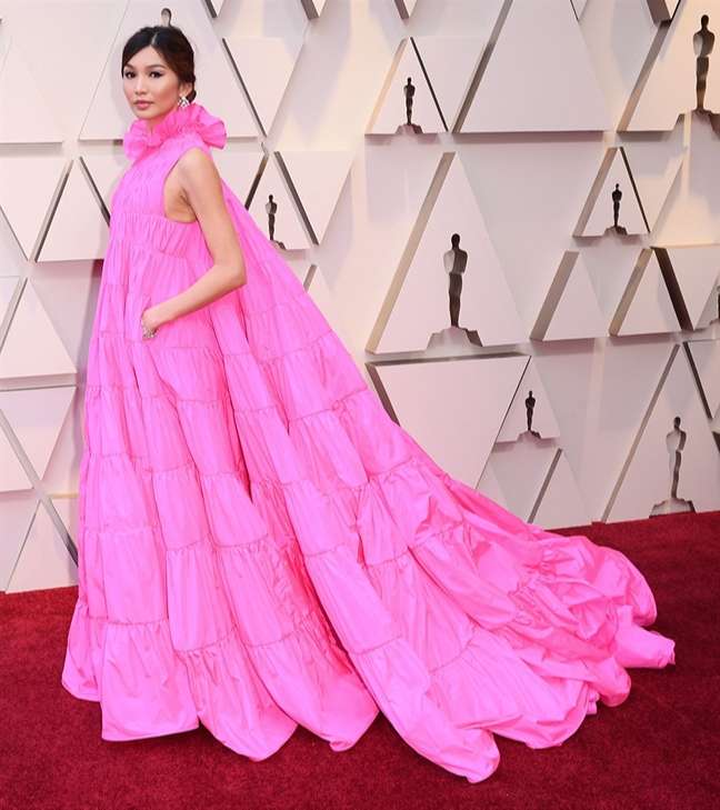 Gamma Chan diện bộ đầm với phom rộng thùng thình cùng tông màu hồng rực rỡ cũng đặc biệt gây chú ý tại Oscar năm nay.
