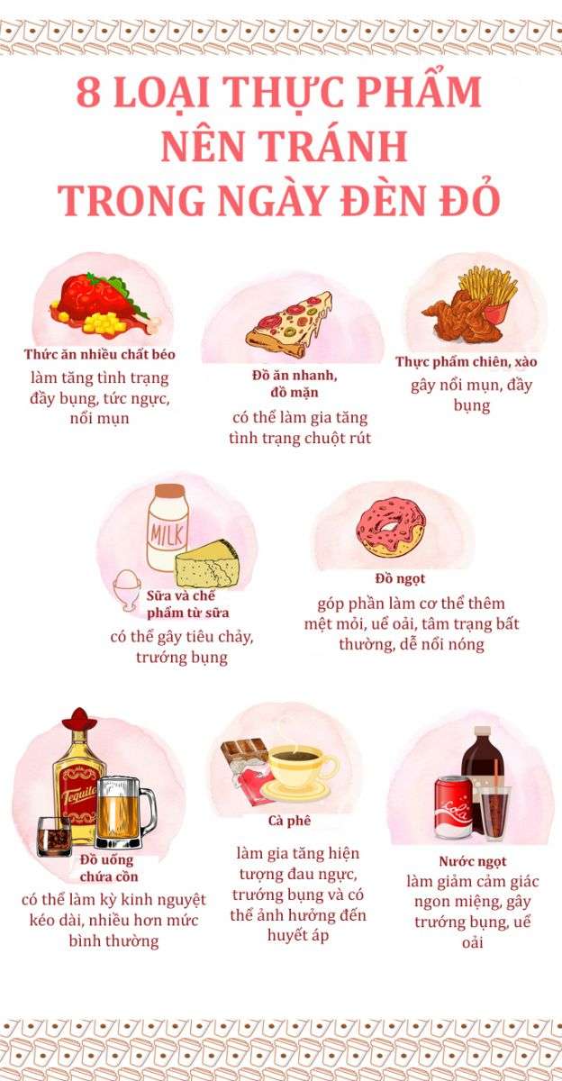 Tránh ăn 8 thực phẩm này để giảm nổi mụn, đau bụng trong ngày đèn đỏ