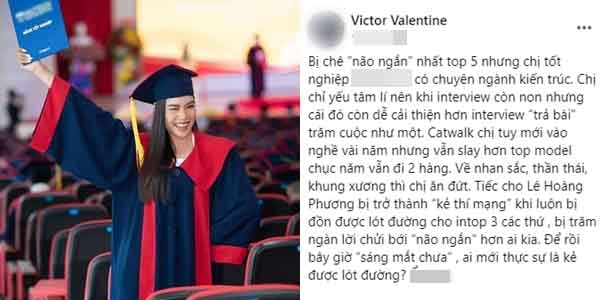 Một tài khoản đã lên tiếng tiếc thay cho người đẹp Lê Hoàng Phương vì sở hữu “tài sắc vẹn toàn” nhưng trong quá trình tham gia Hoa hậu Hoàn vũ Việt Nam liên tục bị xem là “kẻ lót đường”.